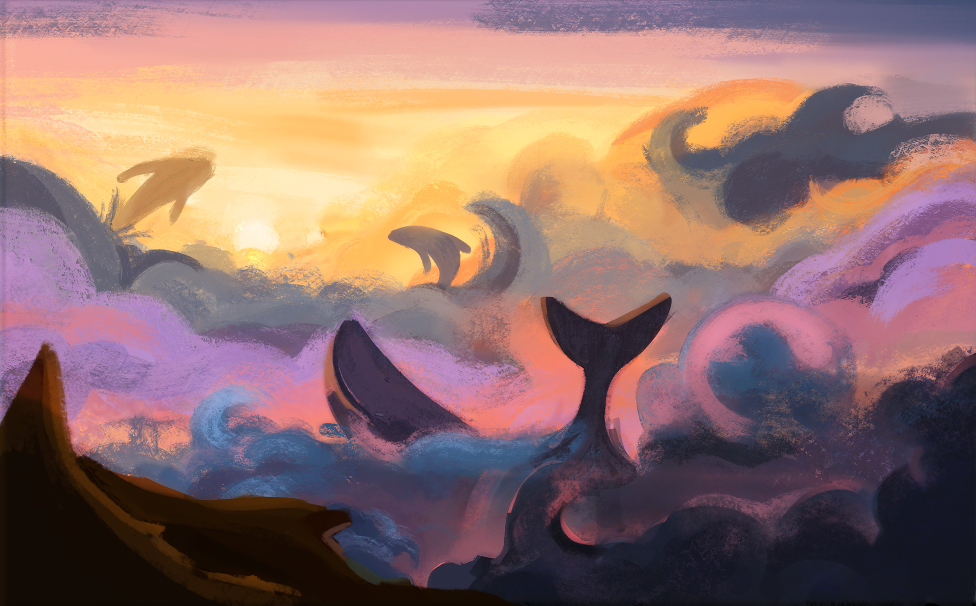 Sunset Whale Migration, Digital Painting, 2021