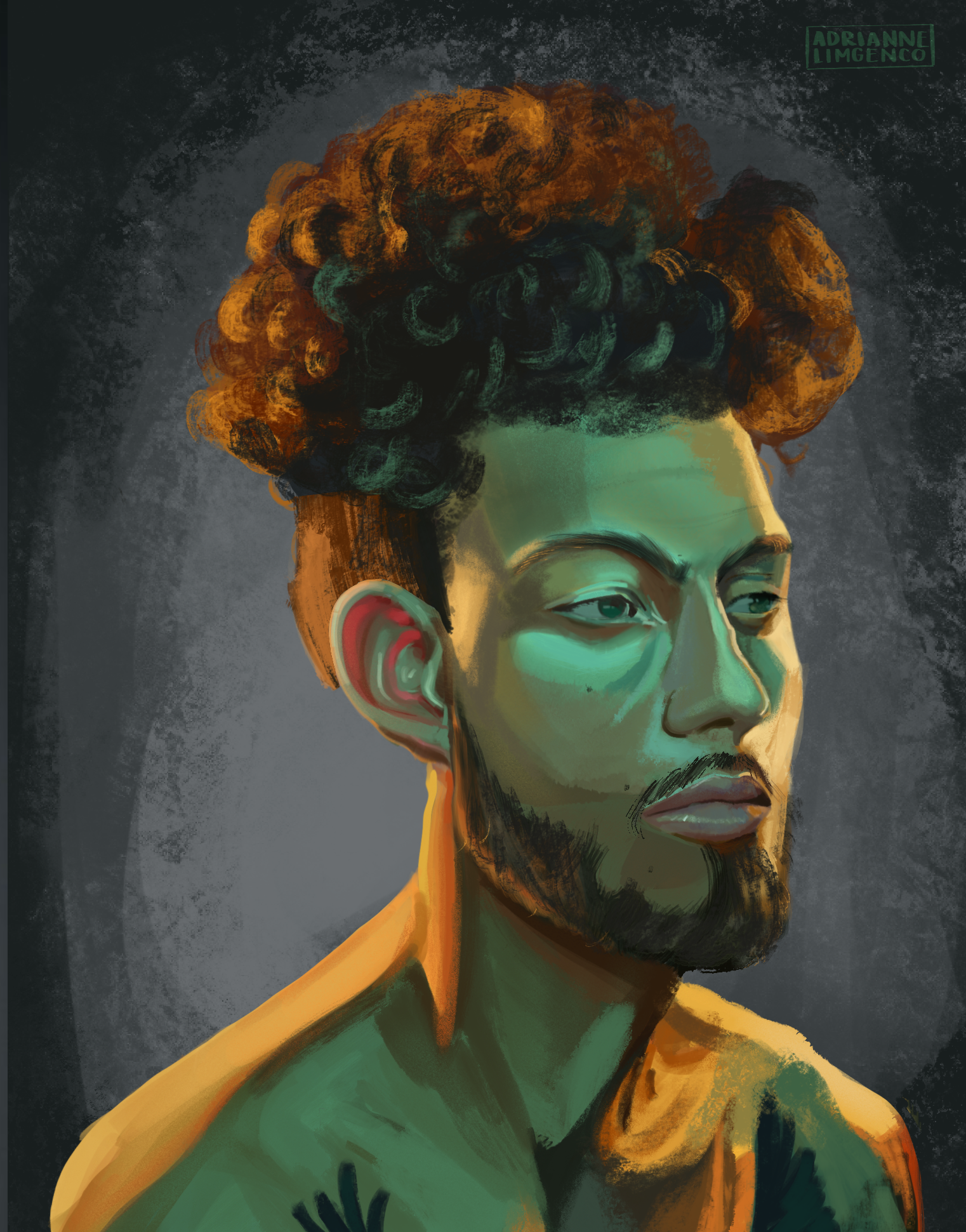 Right: Study of a Man in Green and Gold Lighting, Digital Painting, 2021